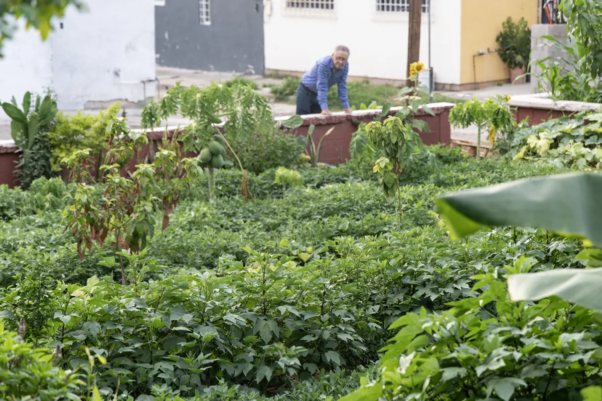“No es negocio, es para quitarse el hambre. La gente puede cortar nopales, tomate o lo que haya, solo pedimos que no sea para vender”, explica Guadalupe Gastélum, quien vive justo frente al huerto y es uno de los encargados de cuidarlo.