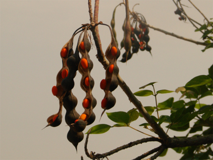 El Colorín pertenece a la familia de las Leguminosas y es un árbol muy común a lo largo del país. El nombre del género erythrina se refiere a las flores de color rojo y el nombre del lugar de origen. El Árbol llega a medir hasta 9 m de alto, con tronco grueso, corteza café lisa con estrías verde claro. Sus hojas compuestas son grandes, que cuentan con 3 hojuelas triangulares que miden de 7 a 11 cm. Cuenta con flores rojas que crecen en racimos piramidales en las puntas de las ramas que son polinizadas por insectos. Sus frutos son unas vainas comprimidas y contraídas entre semilla y semilla de coloración rojo escarlata con una línea negra. Muchos pájaros visitan las flores ricas en néctar de estos árboles como lo son comúnmente los colibríes grandes.